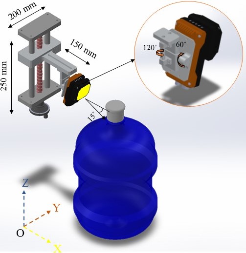 – Nếu nhìn từ trên xuống camera được đặt thẳng đứng, cách nắp của sản phẩm 1 khoảng 100mm. Camera có thể di chuyển linh hoạt theo các trục X, Y và Z.